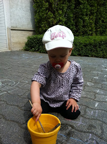 Chalk drawing and water painting on the driveway - I love art activities that don't involve any clean up! And because they're so easy to put away, we can always find time to do some art.